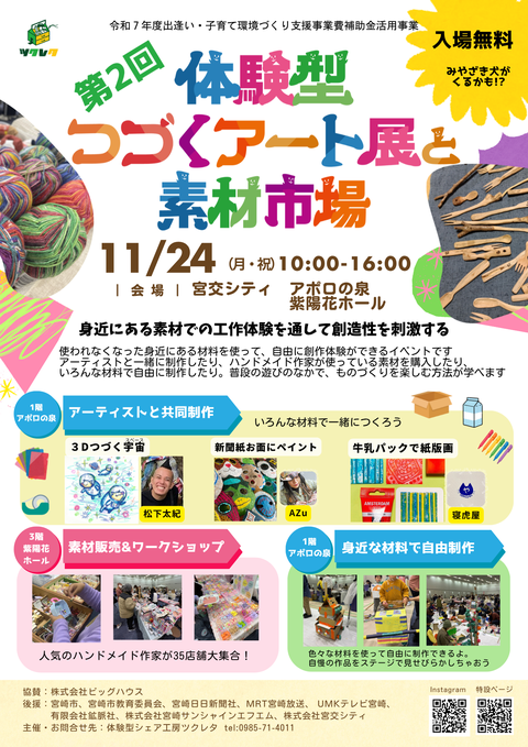 前回、大好評のうちに終了した「体験型つづくアート展と素材市場」を今年も開催します。