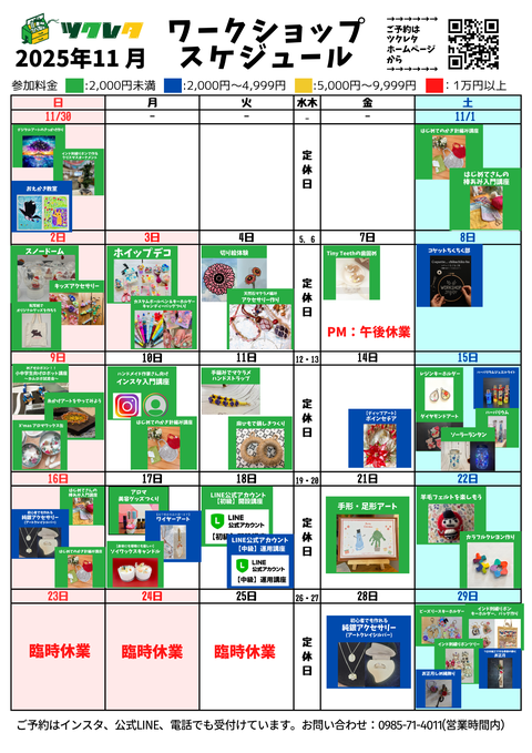 講師に教わりながら、2時間ほどで自分の作品を作る特別なツクレタ体験ができるワークショップを開催しています。
