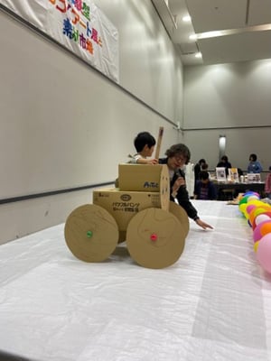 新聞紙、段ボール、空箱、包装紙、牛乳パック、木材、ハギレなど、さまざまな材料を用いて自由に制作できます。