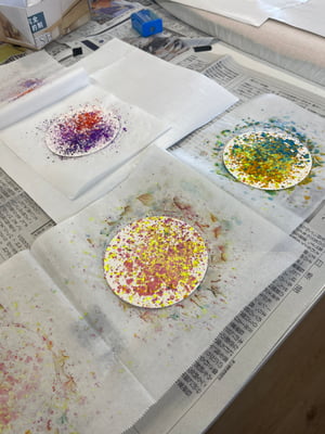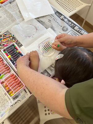 クレヨンを台紙の上にけずって、アイロンでとかしていきます。