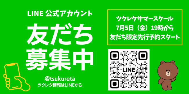※本ワークショップはご予約不要で、当日ツクレタにお越しいただければ随時体験できます。