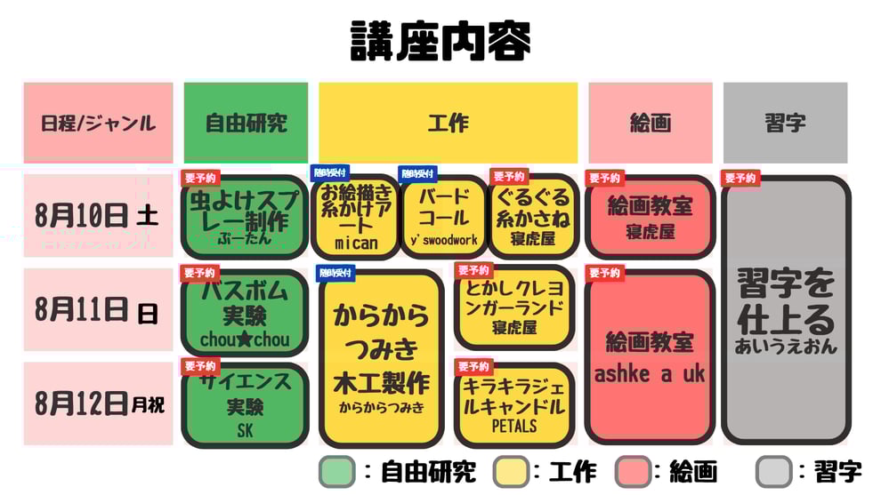 当日完成できなかった方向けに8月17日(土)午後、8月25日(日)終日に予備日を設けています。