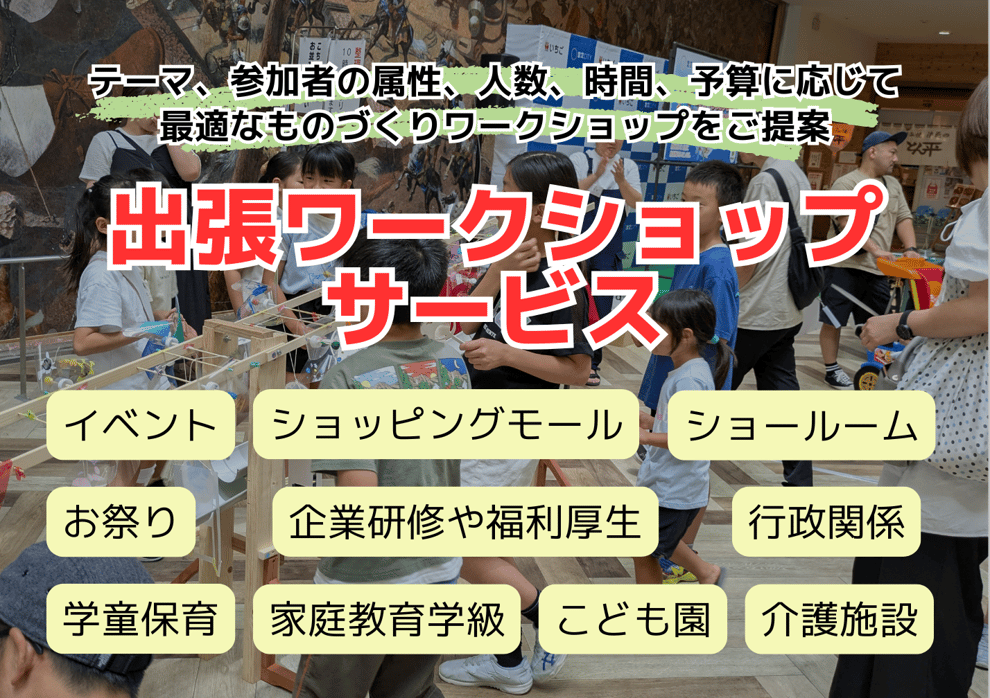 創作体験だけでなく、創作物を使った更なる体験の提供など、イベント向けのワークショップもあります。